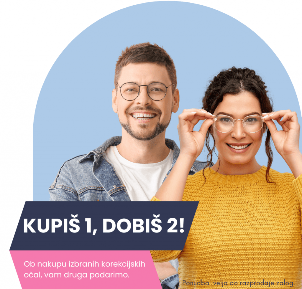 Akcija 1 + 1 gratis! Ob nakupu izbranih očal, vam druga podarimo